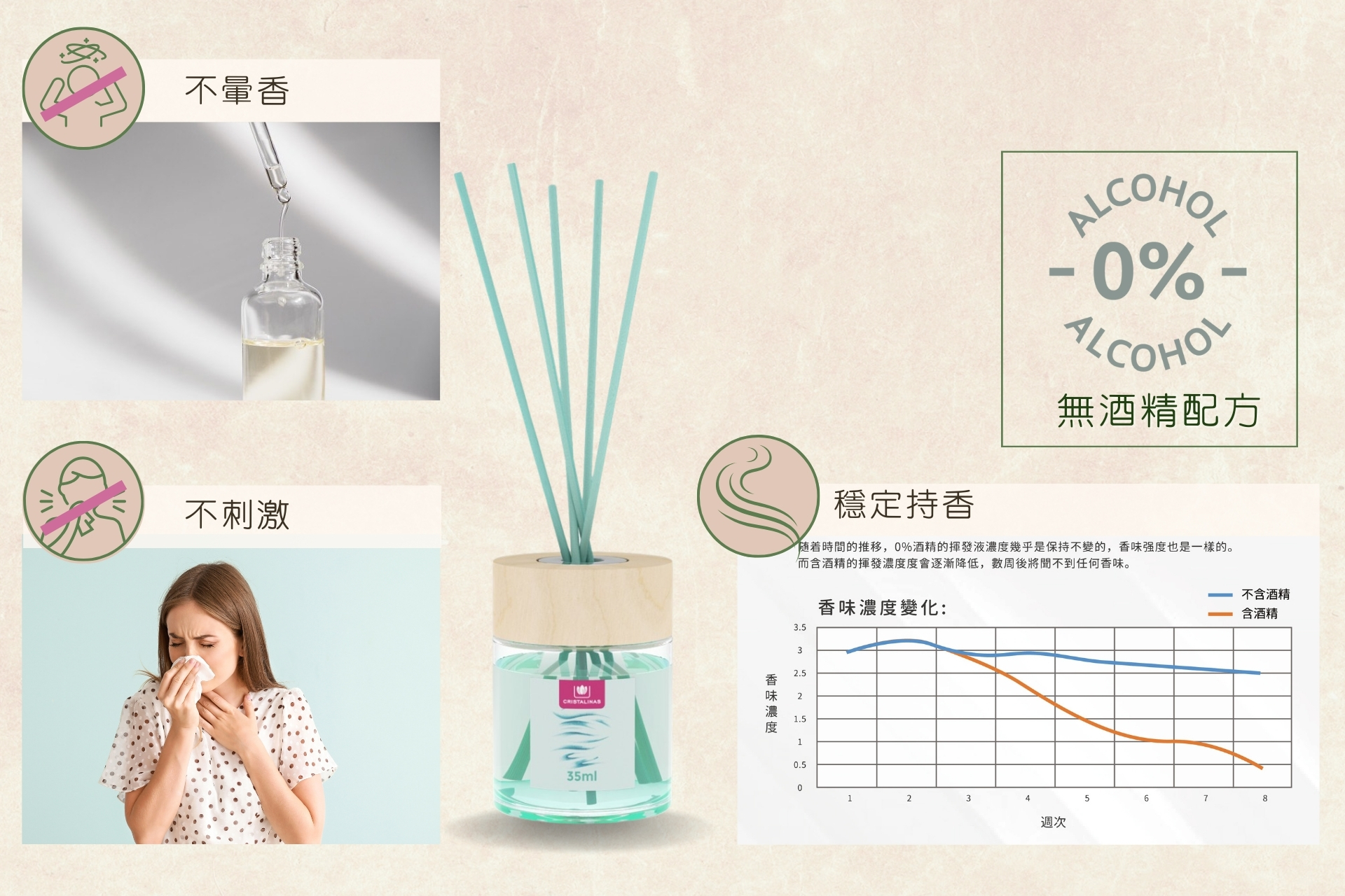 品牌香氛以0% 酒精配方為基礎進行研發。