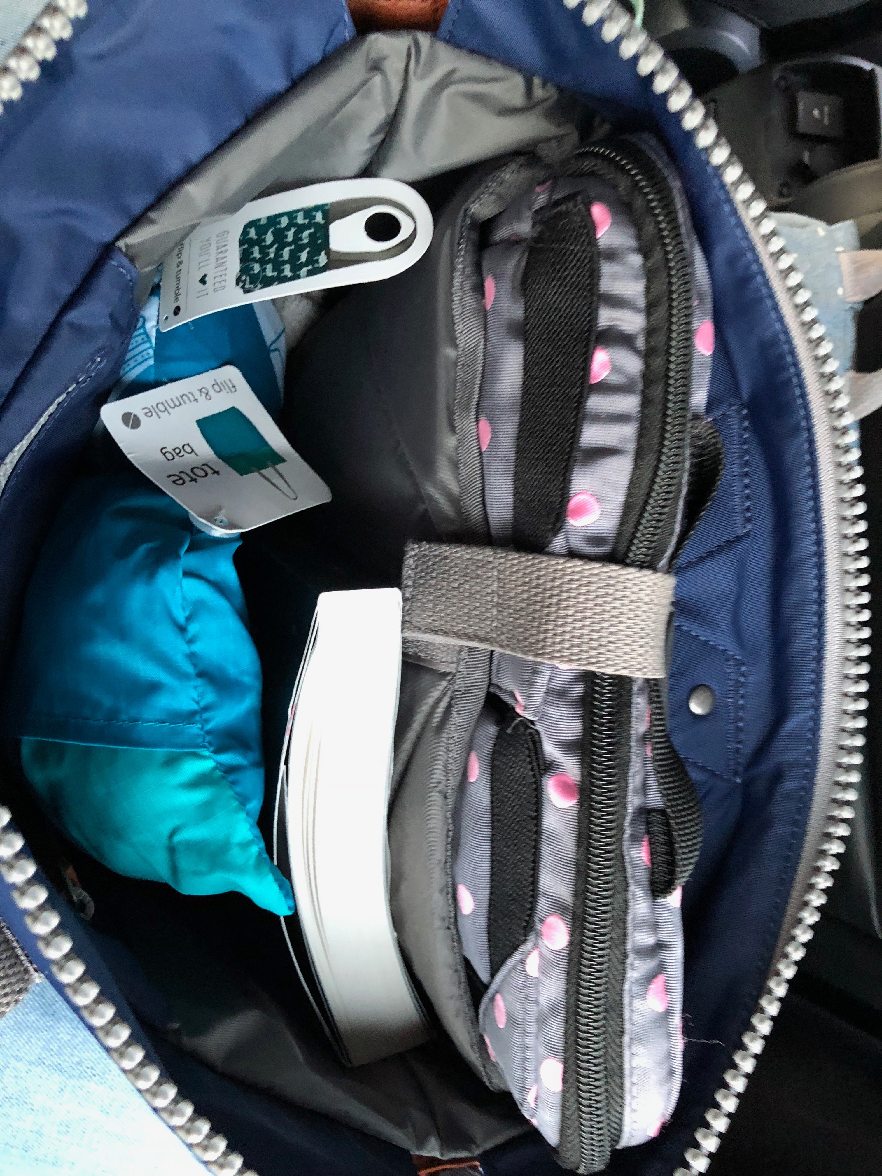 雖然小小一咖,它可塞得進萬一要隨時做功課訂行程筆電、打發時間的一本書、隨身水壺、錢包及小孩的必備物品等等,完美收納之下,外型及背起來依舊不笨重很輕巧。就算這次只帶了一大一小兩包,也輕鬆分配完畢隨身行囊!還能再多放兩個FLIP & TUMBLE收納包,翻轉就可以作為購物袋,以備不時之需。