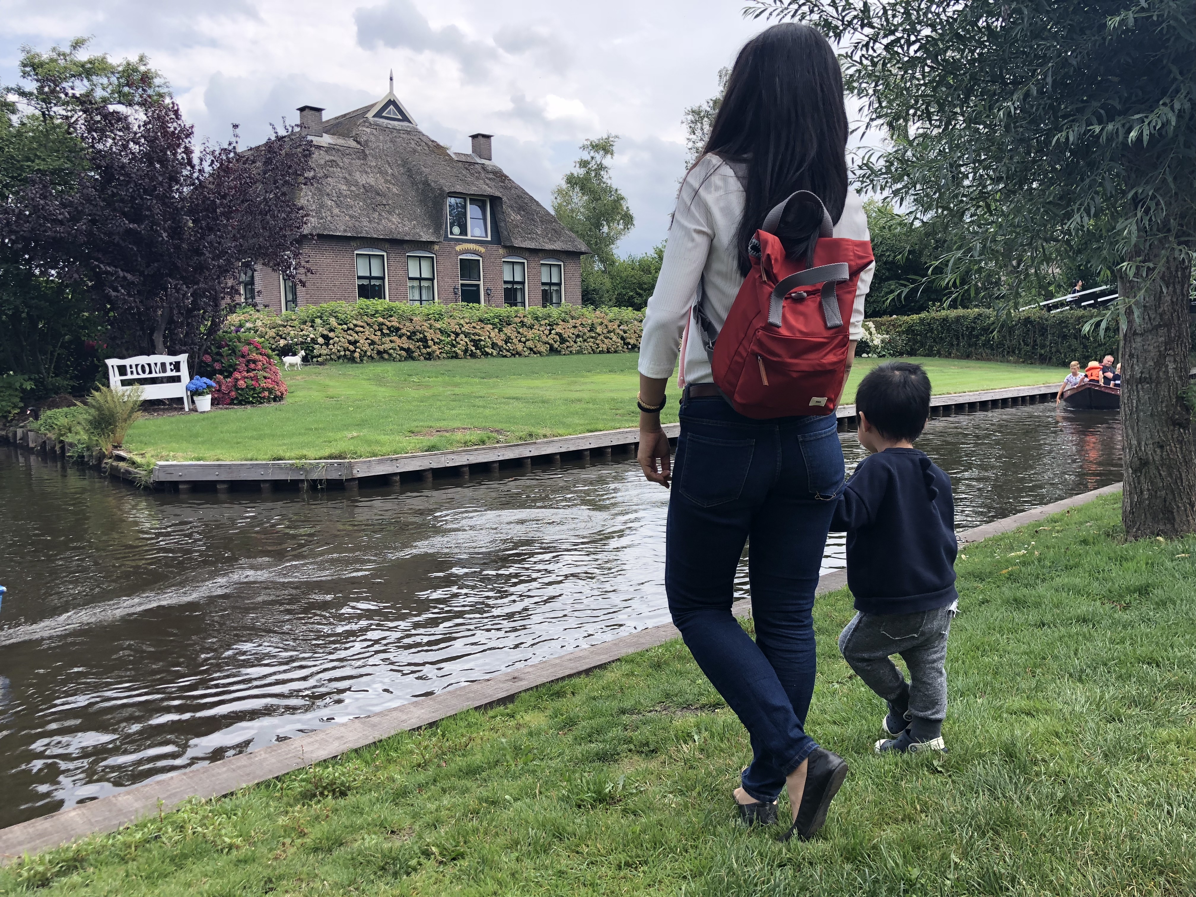 這次目的地是堪稱荷蘭的威尼斯—羊角村。因為古村沒有道路,以運河和船作為主要交通方式,所以有著讓人誤以為置身在威尼斯的河道,而靜謐的農村景色及宛如童話故事裡的房子,正如童話村落的真實版,讓我想帶著孩子一起看看他們心中的夢幻國度。